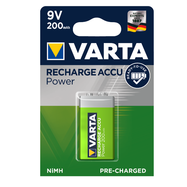 Batterie 9V Transistor E-block Ricaricabili da 200 mAh Ready 2 Use - pronte all'uso: Le Batterie Ricaricabili VARTA Ready to Use sono pre-caricate per un utilizzo immediato